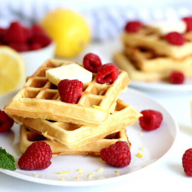 If you're eating low-carb and miss your morning be sure to give these keto waffles a try! These guys are made with almond flour and flavored lots of lemon, while MCT Powder adds a dose of