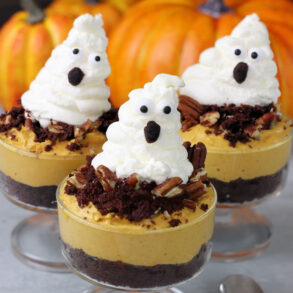 This pumpkin mousse is also super delicious as a standalone dessert, even dare we say without the ghosts.
